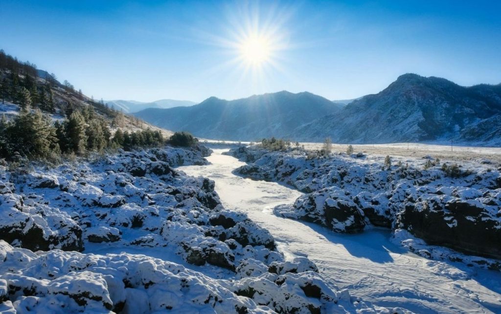 Алтай поражает своей природой: тайга, горы, на юге — переход в степь. Это хорошее место для встречи Нового года. Любителям активного отдыха предлагают массу развлечений: эко-туры, катание на снегоходах, пешие походы и многое другое.