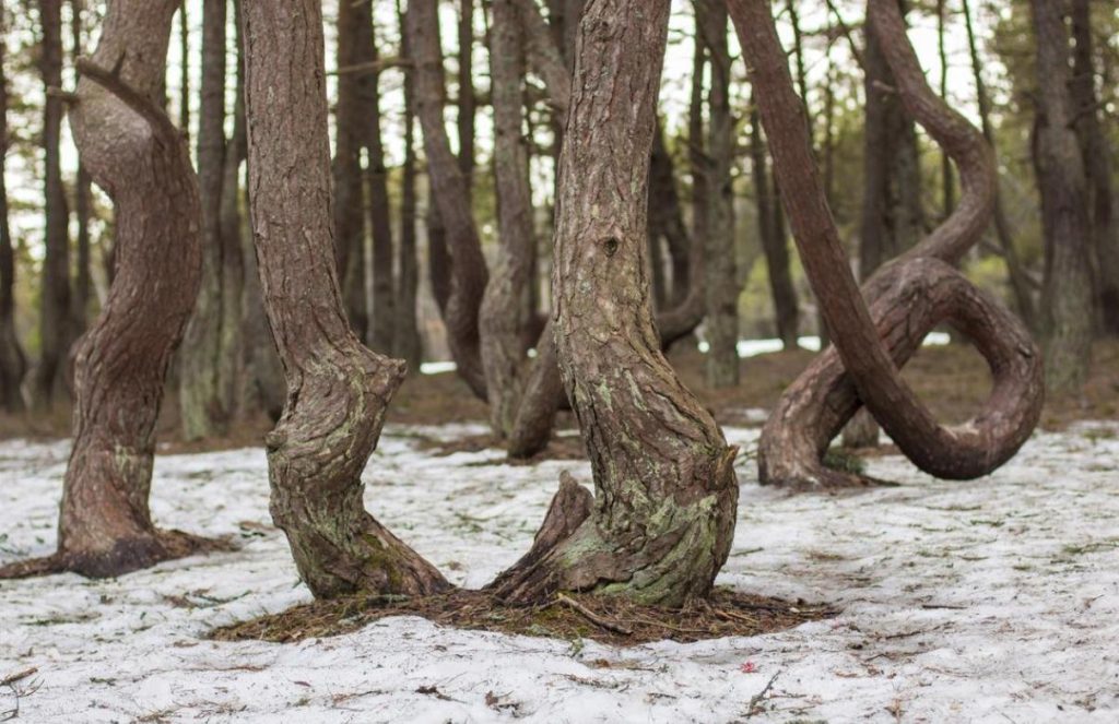Национальный парк «Куршская коса» в Калининградской области внесен в список объектов всемирного наследия ЮНЕСКО. Одна из ее главных достопримечательностей — танцующий лес, в котором стволы сосен замысловато искривлены. Причины такой формы деревьев до сих пор не установили — ученые выдвигают самые разные гипотезы. Одни считают, что виной всему геомагнитные поля, другие указывают на сильный ветер на балтийском взморье, третьи считают, что молодые сосенки каким-то образом повредили. Так или иначе, посмотреть на «танцующий лес» едут со всей страны.